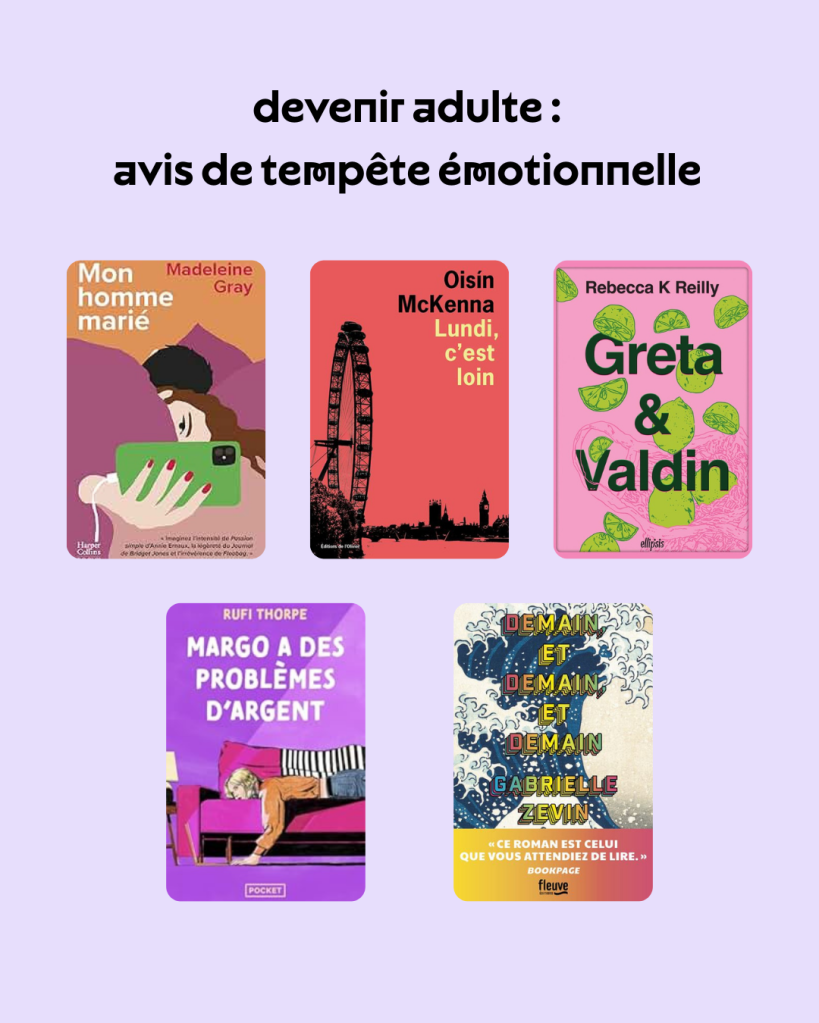 Que des coups de coeur pour parler du passage à l’âge adulte, de cette période flottante où l’on se détache de l’innocence de l’enfance pour plonger tête la première dans les responsabilités, le quotidien aliénant, la complexité des relations humaines. Trouver sa place, comprendre qui l’on est et comment on souhaite naviguer dans le monde.